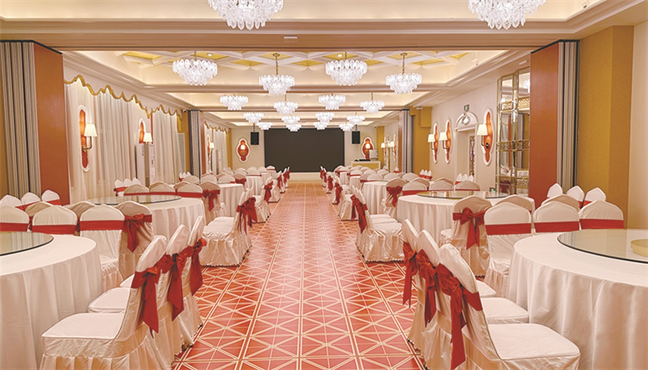 永利宮—優(yōu)雅大氣、雍容華貴,位于大酒店北樓一層,面積392㎡,可承接20桌的中小型宴會。