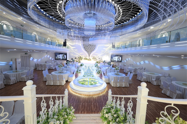 皇宮廳—金碧輝煌、皇宮式裝修,面積1038㎡,層高8.6米,配備愛情階梯、軌道威亞、二層觀禮臺、浪漫燈光秀、旋轉(zhuǎn)升降舞臺、頭頂天幕連接開合大屏。可承接50桌的大型宴會,也可舉辦600人的大型會議;還可用作會展、車展場地,每逢節(jié)假日還為市民上演文藝節(jié)目。
